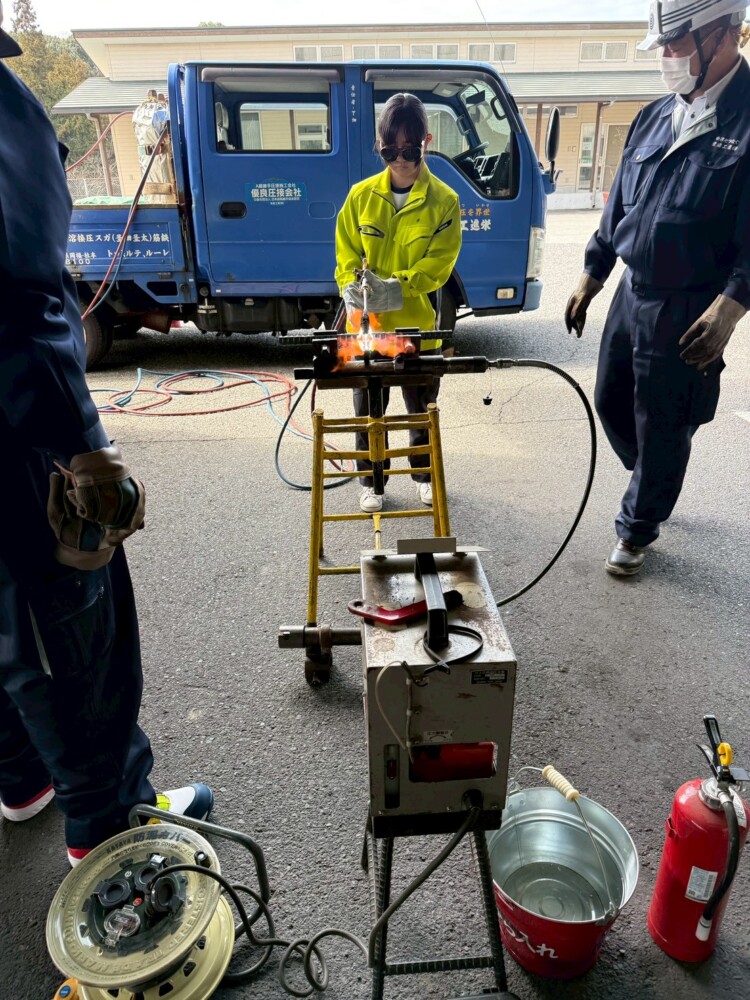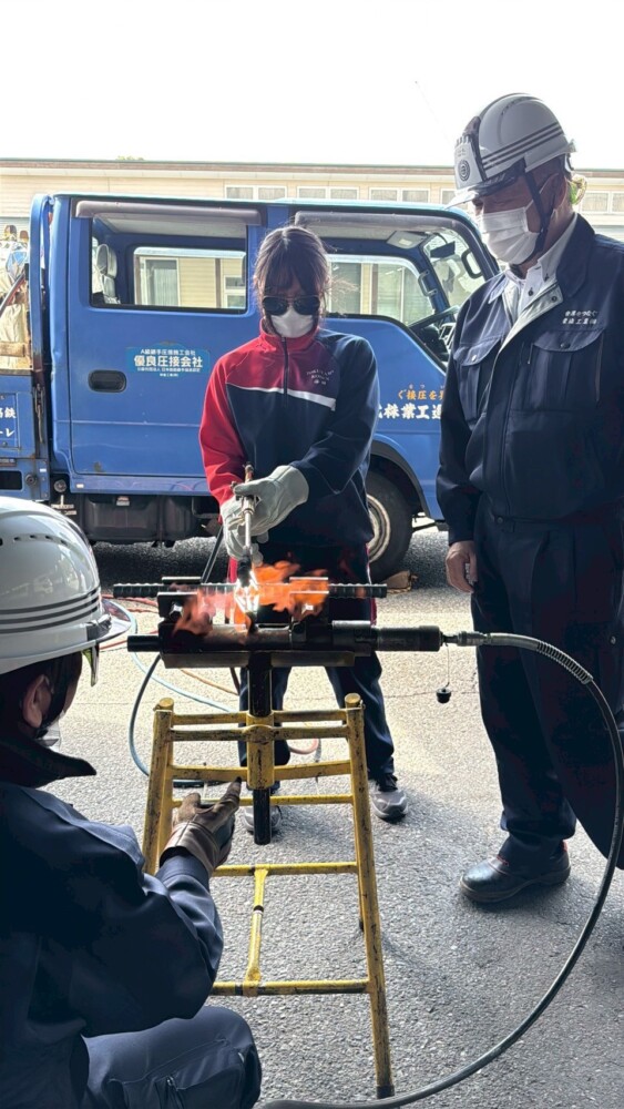 協賛いただいた、圧接工事として栄進工業株式会社様には、圧接工事の事を説明していただきました。
