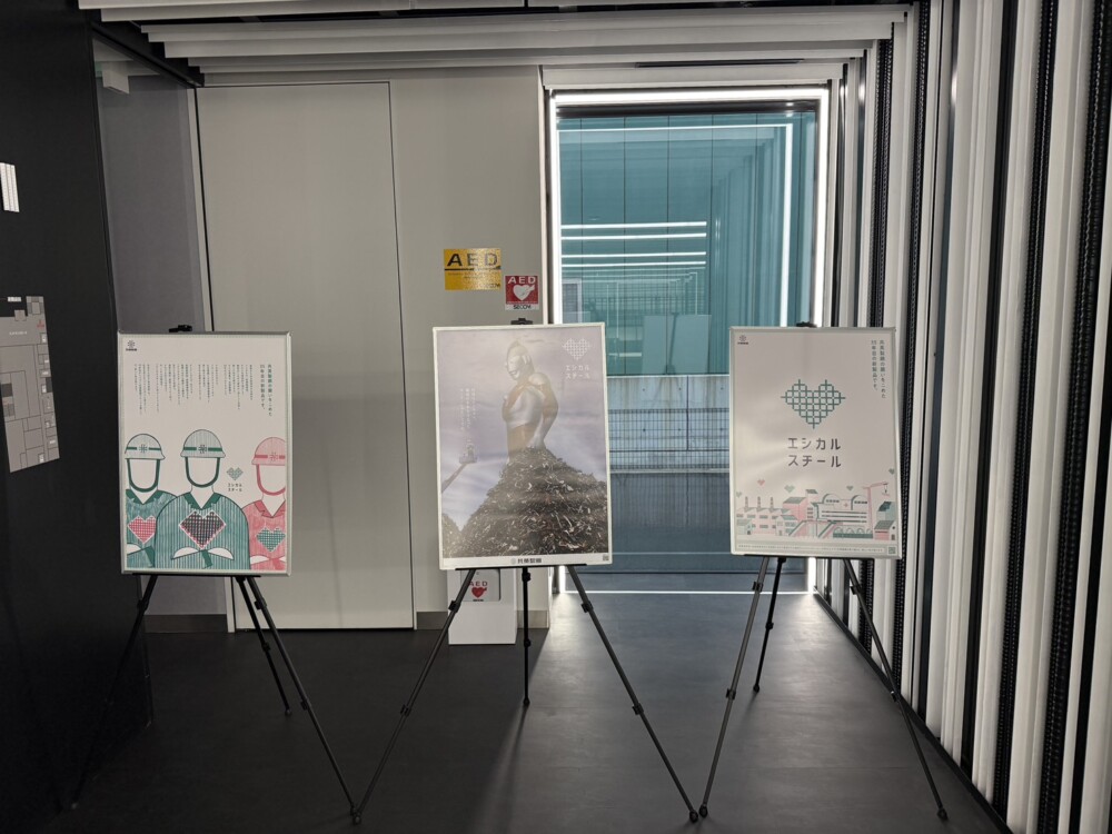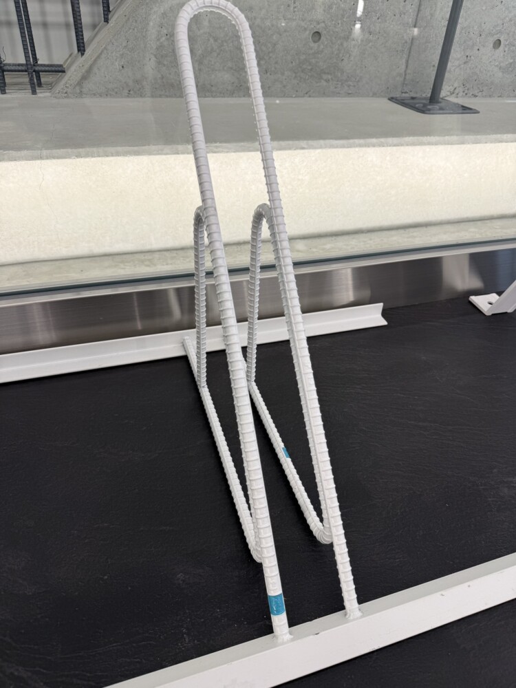 新作の自転車置き場も展示されていて、ロールマークにはエシカルカラーの水色が塗られていました。
