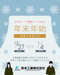 2025年12月27日(土)~2026年1月4日(日) 上記の期間を休業とさせていただきます ご迷惑をおかけしますが、よろしくお願いいたします。